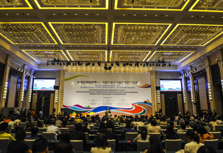 6月26日,絲綢之路經(jīng)濟帶國際研討會在烏魯木齊開幕。該研討會由國務(wù)院新聞辦公室主辦,中國社科院、中國外文局、新疆社科院共同承辦,會期兩天,設(shè)兩個圓桌會議,議題分別是“絲綢之路:過去、現(xiàn)在和未來”、“共建絲綢之路經(jīng)濟帶,打造互利共贏的利益共同體”。來自中國、俄羅斯、美國、印度、哈薩克斯坦、吉爾吉斯斯坦、阿富汗、土耳其等20余個國家的百余名專家學者,將圍繞上述議題展開深入交流研討。 圖為開幕式現(xiàn)場。