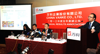 2014年,萬科企業(yè)股份有限公司在香港公布2013年度全年業(yè)績。(資料照片) |