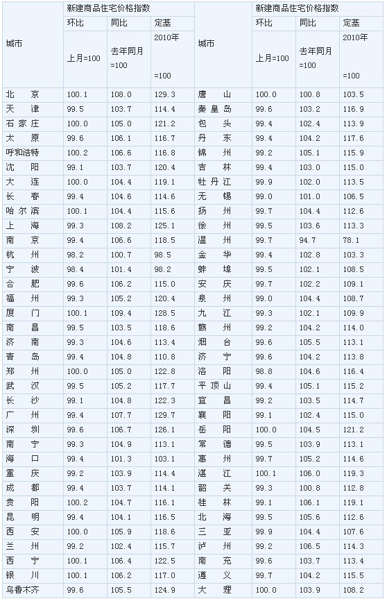 表1:2014年6月70個大中城市新建商品住宅價格指數(shù)