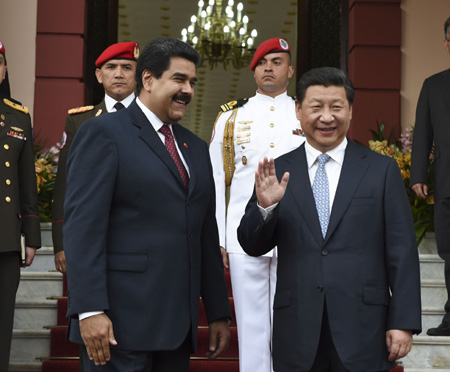 當(dāng)?shù)貢r(shí)間7月20日,國家主席習(xí)近平在加拉加斯同委內(nèi)瑞拉總統(tǒng)馬杜羅舉行會談,兩國元首宣布將中委關(guān)系提升為全面戰(zhàn)略伙伴關(guān)系。習(xí)近平提出,應(yīng)加強(qiáng)兩國合作頂層設(shè)計(jì),以金融和投資為引擎,以能源合作為主軸,多個(gè)輪子一起轉(zhuǎn)。雙方要用好融資合作機(jī)制,推進(jìn)礦產(chǎn)、基礎(chǔ)設(shè)施建設(shè)、科技合作,盡早啟動農(nóng)業(yè)示范園建設(shè)。中方愿加大對委方衛(wèi)星技術(shù)轉(zhuǎn)讓,鼓勵有實(shí)力的中國企業(yè)積極參與委內(nèi)瑞拉經(jīng)濟(jì)特區(qū)建設(shè)。