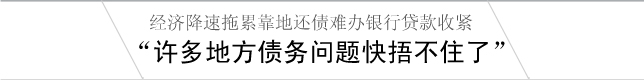 | 《經(jīng)濟參考報》記者在多省采訪發(fā)現(xiàn),部分地區(qū)在經(jīng)濟下行的壓力下收入增速不斷下降、發(fā)展方式轉(zhuǎn)變緩慢,債務問題因此凸顯。與此同時,伴隨土地及房地產(chǎn)市場的陡然降溫,過去借債發(fā)展、靠地還債的粗放發(fā)展模式難以為繼,一些地方的債務風險迅速積聚。隨著債務進入集中還款期,部分地區(qū)對土地更為依賴,逆市場形勢加速賣地步伐;銀行等金融部門因擔憂地方債風險,對政府貸款往往“明松暗緊”,致使不少地方“腹背受敵”。 | |