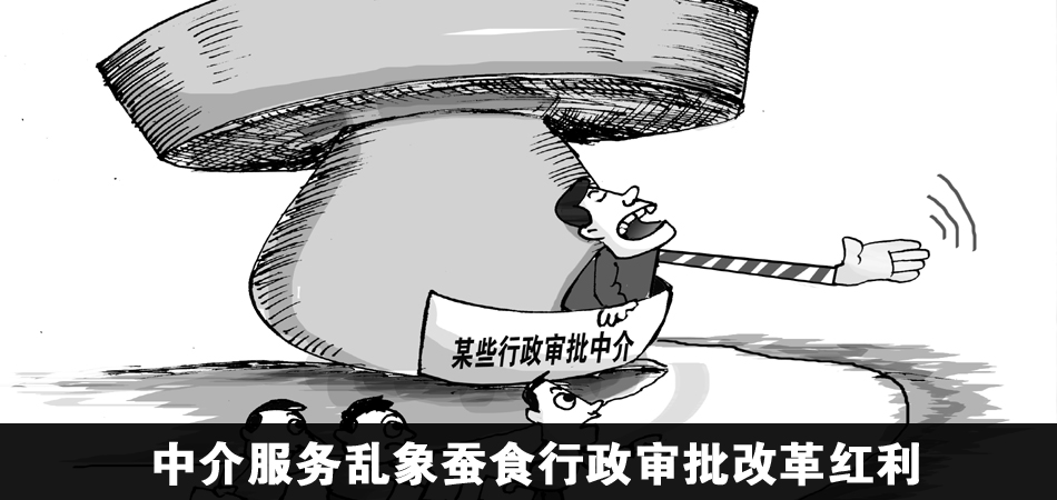 《經濟參考報》記者近日在多地調查發(fā)現,項目辦理主體一大半時間、精力和費用花在中介環(huán)節(jié),中介組織重復審批、壟斷市場、收費名目混亂等亂象層出不窮。很多中介服務組織與政府部門牽扯不清,既是部門權力的延伸,也存在利益輸送;鶎痈刹咳罕姳硎,國家推動行政審批制度改革,加大簡政放權力度,讓企業(yè)和個人受益良多,但混亂的中介服務正吞噬著這些改革紅利,同時損害著政府的公信力和形象。