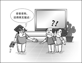 在薪酬捉襟見肘的同時,啃老也成了部分畢業(yè)生不得已的選擇。趕集網(wǎng)發(fā)布《“90后”飯碗報告》稱,65.9%的2014屆畢業(yè)生在畢業(yè)以后不會再得到父母的資助,這些人依靠自己的收入實現(xiàn)了經(jīng)濟獨立,不做“啃老族”。其余三成多仍需“啃老”,甚至有5.9%的人每月還會得到父母1000元以上的經(jīng)濟資助,這群人中有84%的人沒有找到工作,但是他們的月均開銷卻達到1553元,比2014年應屆生的平均水平高出36%。