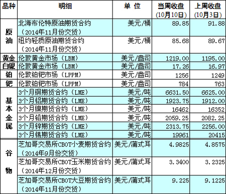 國際大宗商品期貨價格明細表[2014-10-13]