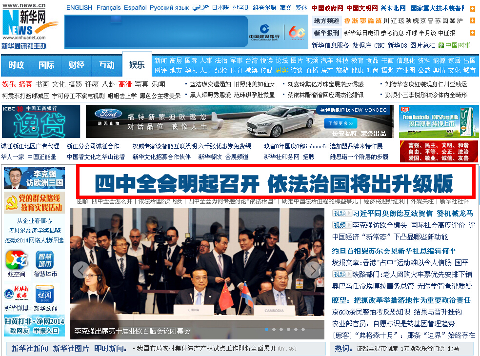 歷史的指針走向又一個重要時刻——2014年10月20日,中國共產(chǎn)黨十八屆四中全會召開,將首次以全會的形式專題研究部署全面推進(jìn)依法治國。
