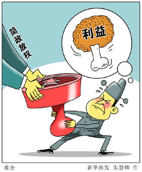 其次,放權(quán)不夠徹底。有的地方受理權(quán)放了,終審權(quán)不放,或者決定權(quán)放了,發(fā)證權(quán)又不放;蛘呤恰皼]好處的容易放,有油水的就不放”。