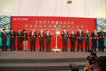 各方嘉賓為雀巢奶牛養(yǎng)殖培訓(xùn)中心首場培訓(xùn)課開班搖鈴 |