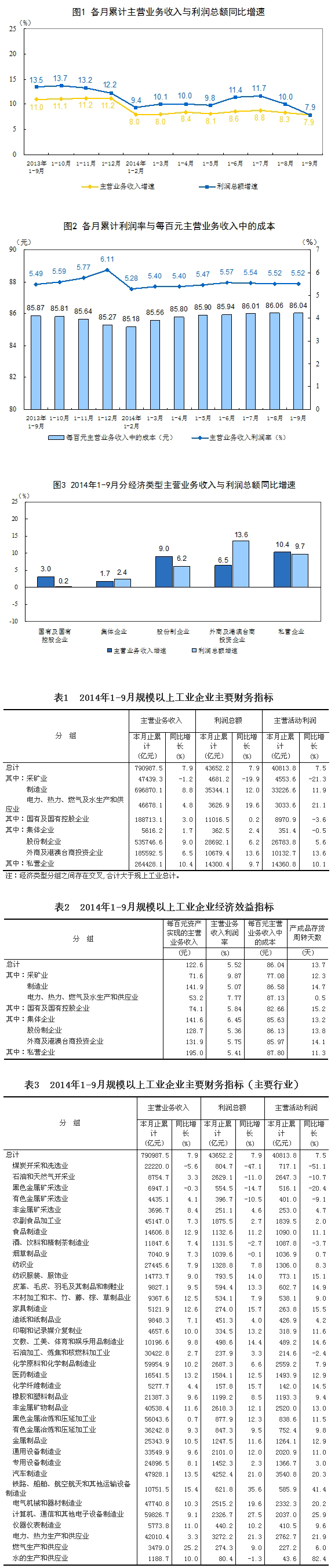 1-9月份,規(guī)模以上工業(yè)企業(yè)主營業(yè)務(wù)收入利潤率為5.52%,每百元主營業(yè)務(wù)收入中的成本為86.04元,每百元資產(chǎn)實(shí)現(xiàn)的主營業(yè)務(wù)收入為122.6元,產(chǎn)成品存貨周轉(zhuǎn)天數(shù)為13.7天。