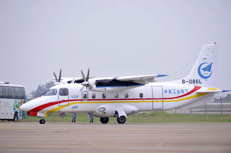 圖為13日,運(yùn)12F飛機(jī)結(jié)束表演后在機(jī)場上滑行。