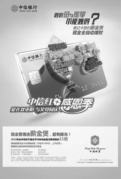 多年來(lái),中信銀行一直心系客戶,把用戶體驗(yàn)銘記于心,四季度開(kāi)展了“中信紅·感恩季”零售業(yè)務(wù)綜合營(yíng)銷活動(dòng),薪金煲作為此次活動(dòng)的四大特色產(chǎn)品之一,讓客戶體會(huì)到最專業(yè)最貼心的理財(cái)服務(wù),正是對(duì)客戶最好的回饋體現(xiàn)和關(guān)心,同時(shí)也秉承了“中信紅·感恩季”綜合營(yíng)銷活動(dòng)的宗旨和理念。