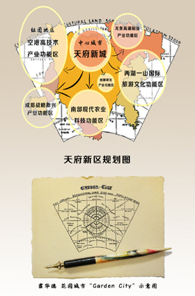 成都南郊近1600平方公里的土地被規(guī)劃為“天府新區(qū)”,四川期望,到2030年前在這里建成一個容納200萬人口、超過成都現(xiàn)有中心城區(qū)規(guī)模的新型城市!疤旄聟^(qū)”在今年十月份獲批國家級新區(qū),意味著這個始于2011年的城市規(guī)劃實驗得到了中國最高層的認可,并將獲得更多的政策支持。