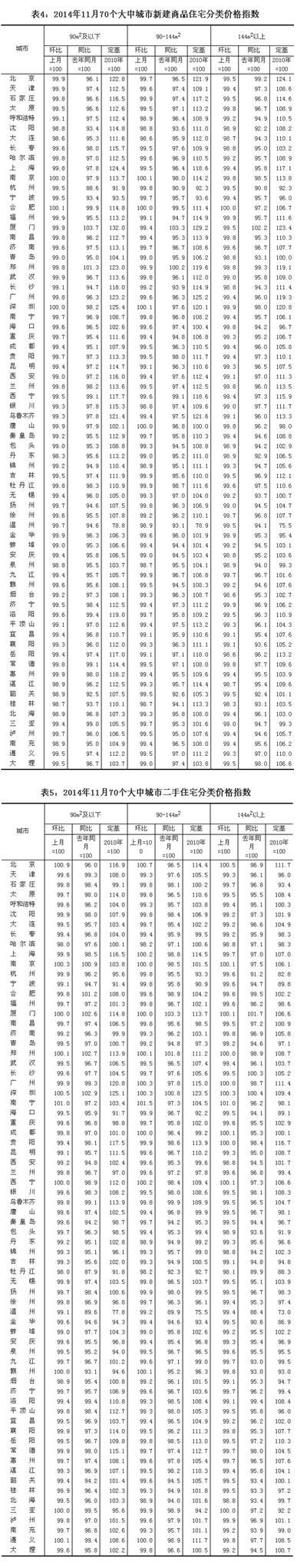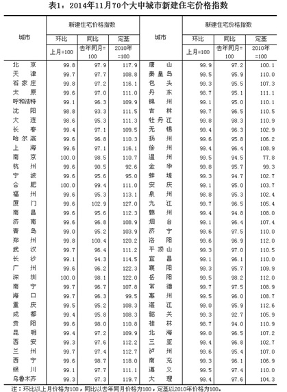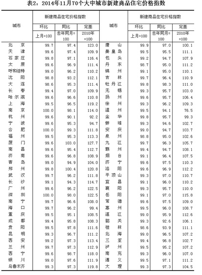 統(tǒng)計局網站18日公布2014年11月份70個大中城市住宅銷售價格變動情況。