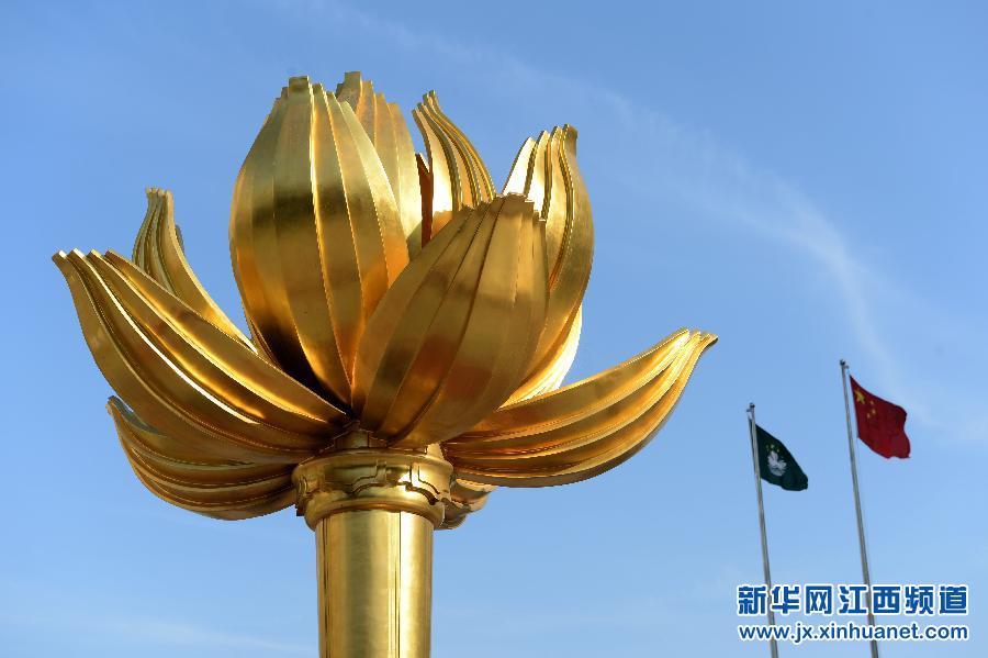這是澳門(mén)金蓮花廣場(chǎng)上的《盛世蓮花》雕塑(新華社記者 秦晴 12月16日攝)。