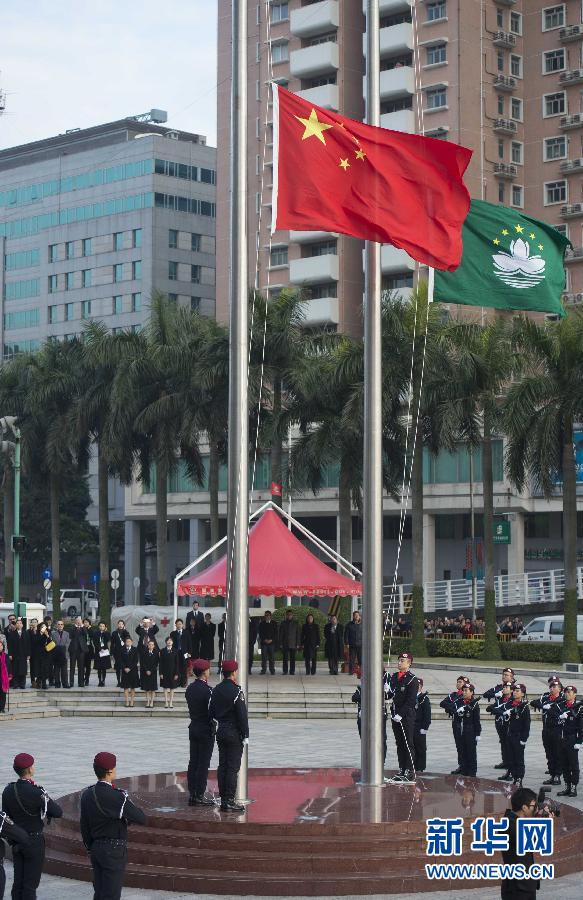 12月20日,澳門金蓮花廣場舉行升旗儀式,慶祝澳門回歸祖國15周年。 新華社記者呂小煒攝