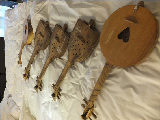 黝黑的膚色,一身灰藍色的棉布衣,帶著一頂具有民族特色的繡制帽子,身材略顯矮小但很結(jié)實的和盛偉透露出一種特別的“堅韌”感。他在談起自己與四弦琴的特別緣分時,很自然地拿出了自己的《殘疾證》,然后輕松地笑笑說:“我從小身體不方便,在十幾歲時開始拿起了四弦琴,跟著我爸爸學了起來,這讓我多了很多快樂,也感覺有了很多希望!
