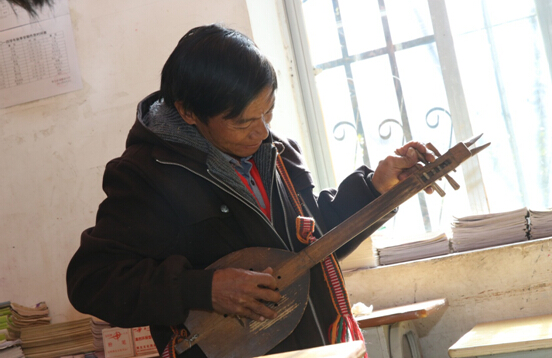 “我是想告訴孩子們讓他們要學會堅強,現(xiàn)在他們大多都是心里高興時彈一彈,但將來他們就知道了,以后的生活中會有很多的痛苦和不容易,那時她們彈起四弦琴會有一些不同的感受”,和盛偉坐在椅子上,粗糙的手里夾著剛點燃的香煙,看著在屋里嬉笑的孩子們?nèi)粲兴嫉卣f。