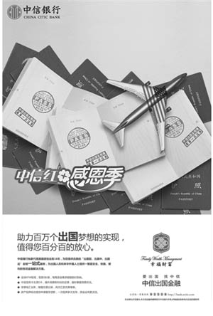 也許您喜歡徜徉在塞納河畔看著夕陽余暉,品味法國的浪漫;也許您期待坐著小艇穿梭在水城威尼斯,感受意大利文藝復興的展現(xiàn)的精致;又或許作為鐵桿球迷的您最希望坐在伯納烏球場,親自為心愛的球隊搖旗吶喊。隨著經(jīng)濟發(fā)展和人們文化素質(zhì)的提高,國內(nèi)游已經(jīng)不能滿足我國居民的旅行需求,F(xiàn)在,越來越多的人期待走出國門“看一看”、“充充電”,但復雜的出國手續(xù)和陌生的國外生活讓許多人望而卻步!耙鰢,找中信”,越來越多的客戶通過中信銀行的出國金融服務,輕松完成了出國夢。據(jù)介紹,中信銀行出國金融服務具備以下四大專業(yè)優(yōu)勢:可實現(xiàn)全球ATM取現(xiàn),取款零時差;信用卡主(附)卡的境外消費即時動態(tài)反饋;學費電匯業(yè)務可智能交易記錄,再次回款無需填表;房產(chǎn)抵押綜合授信申請留學貸款,一次抵押多次支用,資金運用更靈活。就是憑借這些專業(yè)而優(yōu)質(zhì)的服務,中信銀行讓客戶“走出國門”的愿望變得更加簡單易行。據(jù)了解,中信銀行在今年四季度的“中信紅·感恩季,愛在感恩有禮”零售業(yè)務綜合營銷活動中,將出國金融作為特色產(chǎn)品,配備了系列優(yōu)惠活動,感恩回饋客戶,提升客戶滿意度。