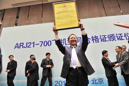 12月30日,中國民用航空局在北京向中國商用飛機有限責(zé)任公司頒發(fā)ARJ21-700飛機型號合格證。這標(biāo)志著我國首款噴氣支線客機通過了型號合格審定,飛機設(shè)計滿足保證安全的基本要求,獲得了參與民用航空運輸活動的“入場券”。據(jù)介紹,ARJ21-700已經(jīng)擁有200多架訂單。通過ARJ21-700飛機研制,我國掌握了一大批新技術(shù)、新材料、新工藝,積累了重大創(chuàng)新工程的項目管理經(jīng)驗,為C919大型客機項目順利推進創(chuàng)造了有利條件。