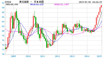 受益于美國(guó)經(jīng)濟(jì)的溫和復(fù)蘇和美聯(lián)儲(chǔ)退出量化寬松的預(yù)期,美元在2014年下半年的外匯市場(chǎng)上獨(dú)占鰲頭,美元指數(shù)逼近八年高位。相比之下,新興市場(chǎng)貨幣則出現(xiàn)全盤下跌的局面,美元對(duì)一些貨幣的匯率創(chuàng)下金融危機(jī)以來(lái)最高水平。隨著美國(guó)經(jīng)濟(jì)復(fù)蘇前景持續(xù)向好,美聯(lián)儲(chǔ)加息預(yù)期漸濃,預(yù)計(jì)2015年美元的上漲行情將繼續(xù)得到支撐,美元牛市在短期內(nèi)仍將延續(xù)。
