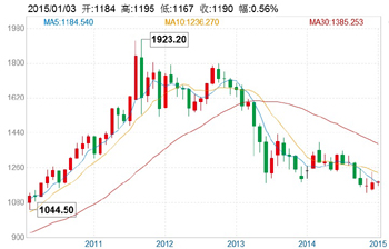 國(guó)際金價(jià)在美聯(lián)儲(chǔ)加息靴子落地之前料將難以見(jiàn)到大幅度的反彈。大多數(shù)人士對(duì)于金價(jià)2015年走勢(shì)的預(yù)期都比較悲觀。法國(guó)興業(yè)銀行認(rèn)為,美國(guó)經(jīng)濟(jì)復(fù)蘇和利率上升將令金價(jià)處于下行趨勢(shì)中。高盛預(yù)計(jì)2015年12月,國(guó)際金價(jià)將跌至每盎司1050美元的水平。2014年基本金屬市場(chǎng)也隨著油價(jià)的暴跌而大幅下挫。原油價(jià)格下跌可能進(jìn)一步拉低通脹預(yù)期,并導(dǎo)致基本金屬被大量出售。分析指出,由于油價(jià)下跌,避險(xiǎn)情緒主宰市場(chǎng),基本金屬價(jià)格短期內(nèi)仍將維持在低位,但是正在逐漸找到支撐,比如中國(guó)、歐洲和日本實(shí)施經(jīng)濟(jì)刺激措施的可能性,以及美國(guó)經(jīng)濟(jì)強(qiáng)勁的復(fù)蘇勢(shì)頭等。