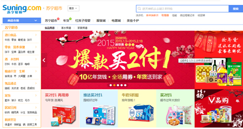 蘇寧超市相關(guān)負(fù)責(zé)人介紹,2015年,蘇寧加快超電器化的步伐,打造線上虛擬、線下實(shí)體的綜合性交易平臺(tái)。蘇寧超市作為重要板塊,承擔(dān)著引流器和增加用戶黏性、復(fù)購(gòu)率的角色。同時(shí),通過(guò)春節(jié)吃、喝等具象化促銷(xiāo)活動(dòng),凸顯蘇寧的全品類(lèi)形象。