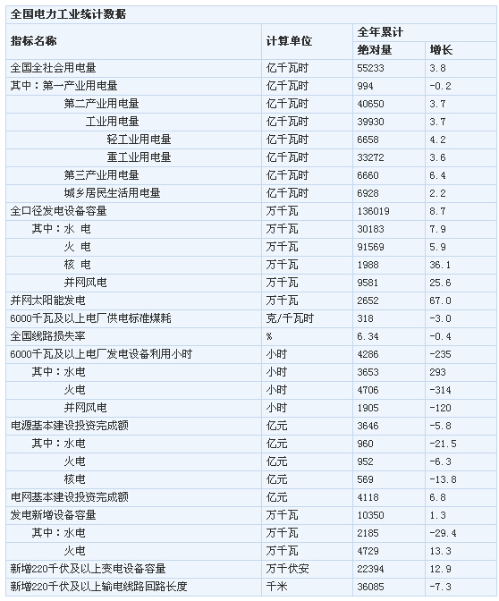 1月17日,國(guó)家能源局發(fā)布2014年全社會(huì)用電量等數(shù)據(jù)。
