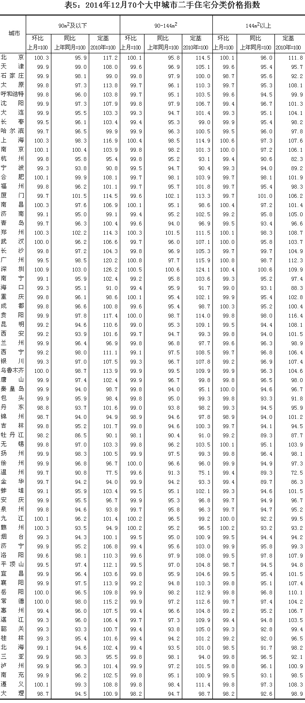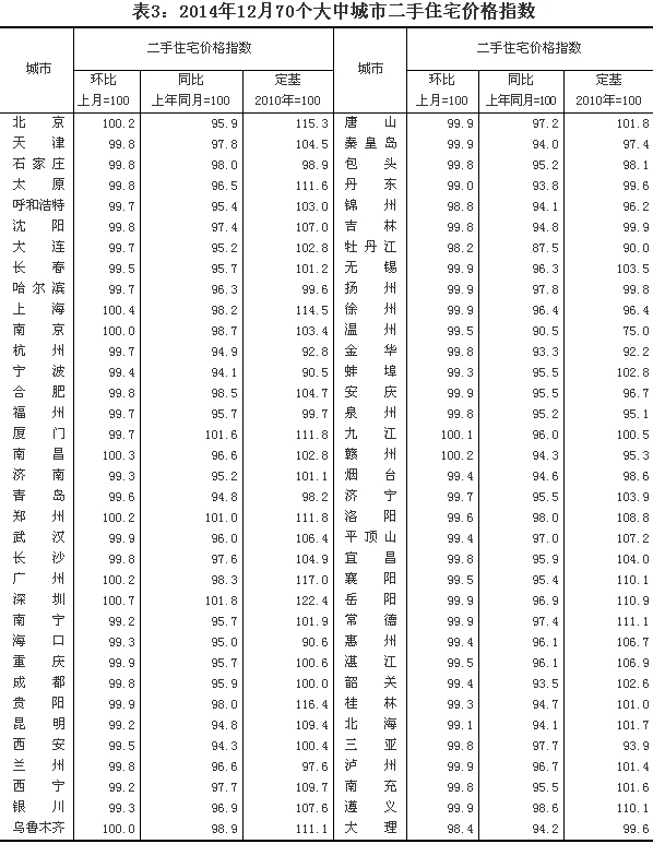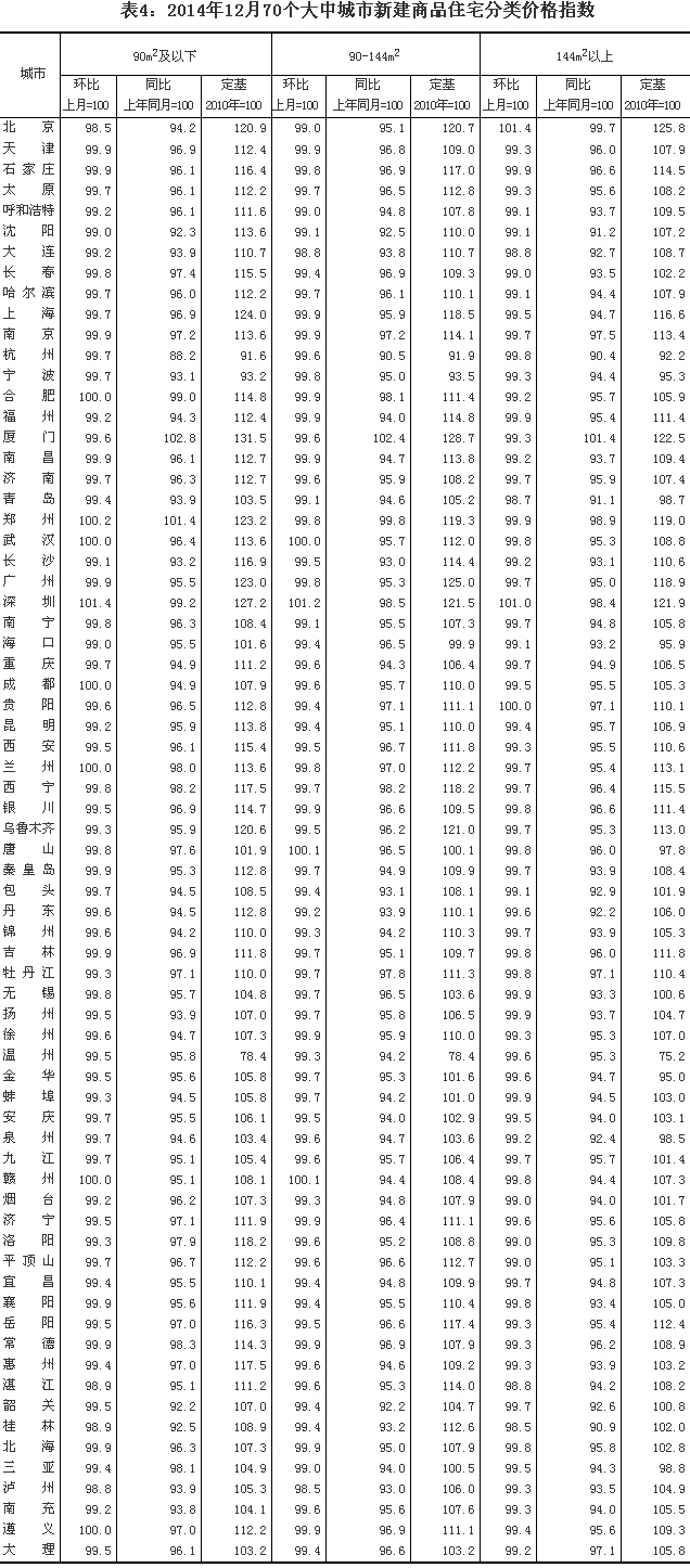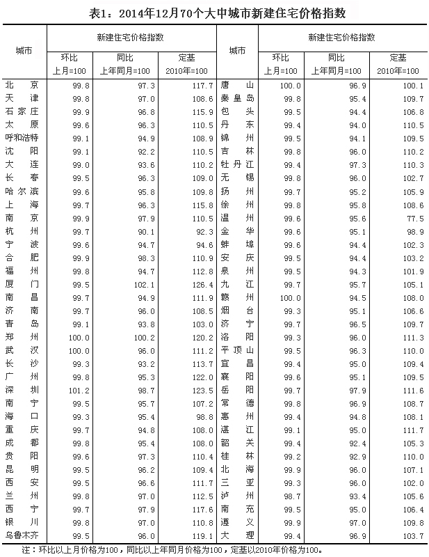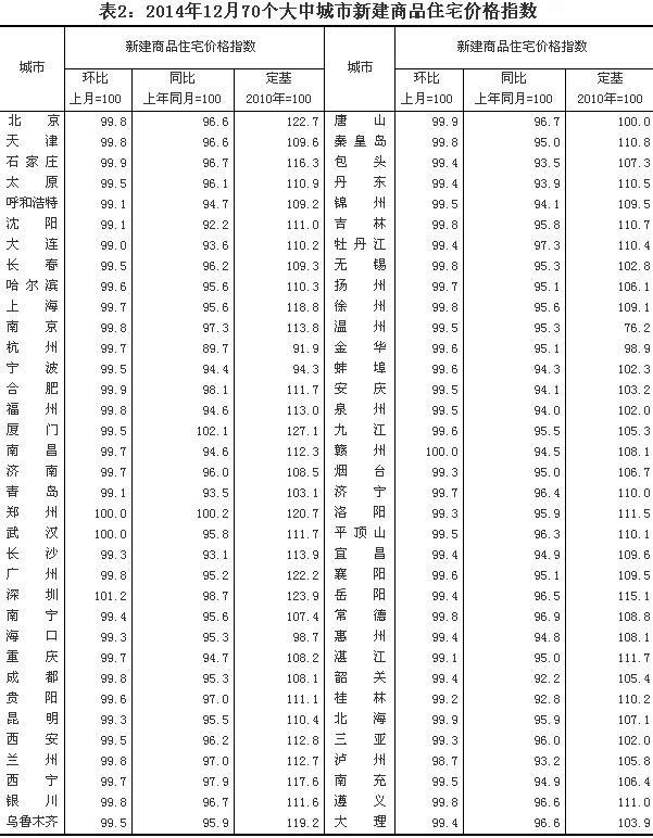 2014年12月份70個大中城市住宅銷售價格變動情況
