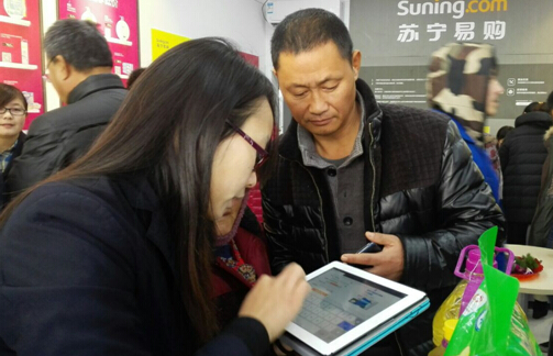 今年52歲的老李告訴筆者,以前買個熱水器都要跑到幾十里外的宿遷城區(qū),好不容易找人運回家后又不會安裝,跑來跑去都要折騰好幾天。幾經(jīng)尋問,老李打開了話匣子:“我們這一輩人沒學過拼音,短信都不會發(fā)就更別提什么這端那端的了。現(xiàn)在很多大廠家這些智能的東西咱都不會用,我在深圳打工的時候看到人家城里人在手機端點幾下就有那個叫火箭哥的把貨送到家門口。我那時就想什么時候我家媳婦也能享受享受呢。沒想到這個愿望這么快就實現(xiàn)了!痹谔K寧員工的幫助下,老李通過蘇寧易購客戶端一下子買上萬塊錢的商品。用老李的話:“我活了大半輩子了第一次發(fā)現(xiàn)原來買家電這么方便!