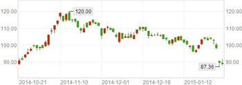 | 阿里美股上市股價(jià)走勢(shì)圖 |