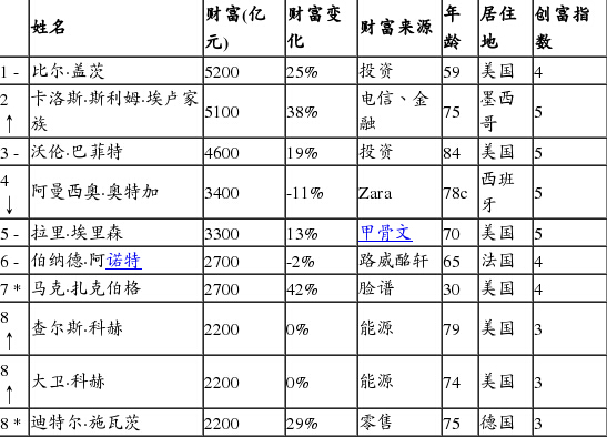 59歲的蓋茨財(cái)富5200億元,蟬聯(lián)世界首富;斯利姆財(cái)富5100億元緊隨其后;巴菲特財(cái)富4600億元位列第三。前三位財(cái)富增長總和達(dá)到3000億元,平均每分鐘增長60萬元。