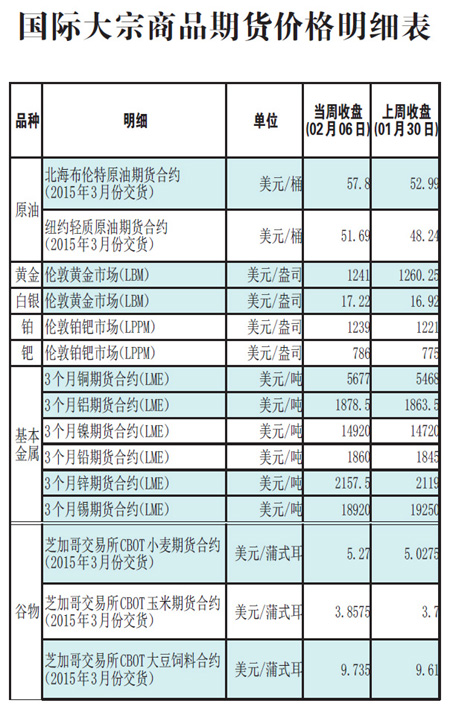 國際大宗商品期貨價(jià)格明細(xì)表[2015-2-9]