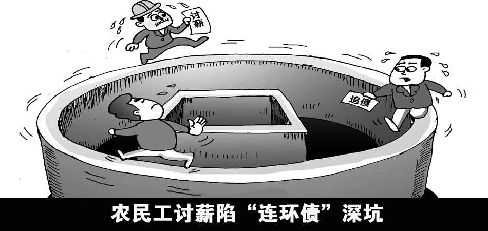 有些地方甚至形成了“連環(huán)債”鏈條:農(nóng)民工工資被包工頭或建筑承包商拖欠——建筑承包商又被上游的建設(shè)項目企業(yè)拖欠——許多市政建設(shè)項目企業(yè)又被當(dāng)?shù)鼗鶎诱锨贰S捎诿鎻V量大,討薪往往陷入“死結(jié)”。