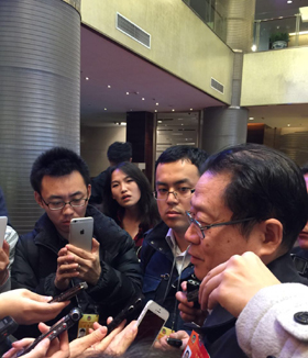 3月2日,在本屆兩會(huì)政協(xié)經(jīng)濟(jì)組委員駐地——北京鐵道大廈,《經(jīng)濟(jì)參考報(bào)》記者就“互聯(lián)網(wǎng)金融監(jiān)管”問(wèn)題“圍堵”采訪全國(guó)政協(xié)委員、前保監(jiān)會(huì)副主席李克穆! ∮浾