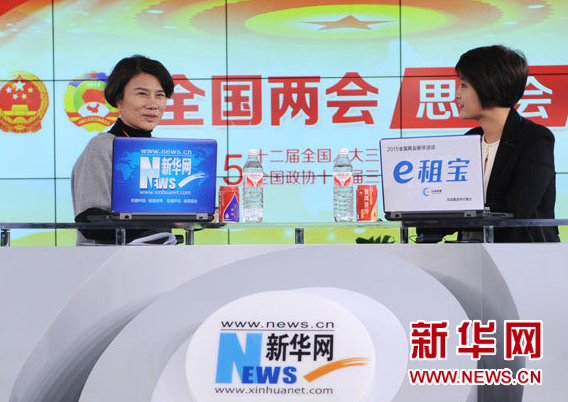 2015年3月9日,全國人大代表、格力集團(tuán)董事長(zhǎng)董明珠做客新華訪談2015全國兩會(huì)特別節(jié)目,談“讓創(chuàng)新成為企業(yè)發(fā)展新常態(tài)”。圖為訪談進(jìn)行中。