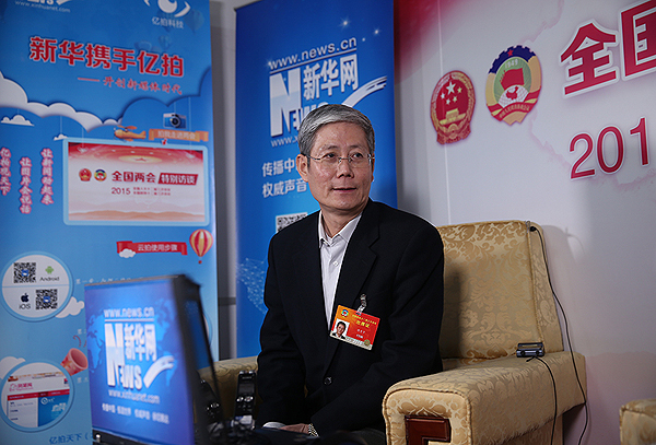 全國政協(xié)委員傅育寧在人民大會堂新華網(wǎng)兩會訪談間接受記者專訪。新華網(wǎng) 王翰林 攝