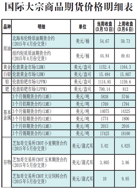 國際大宗商品期貨價(jià)格明細(xì)表[2015-3-16]