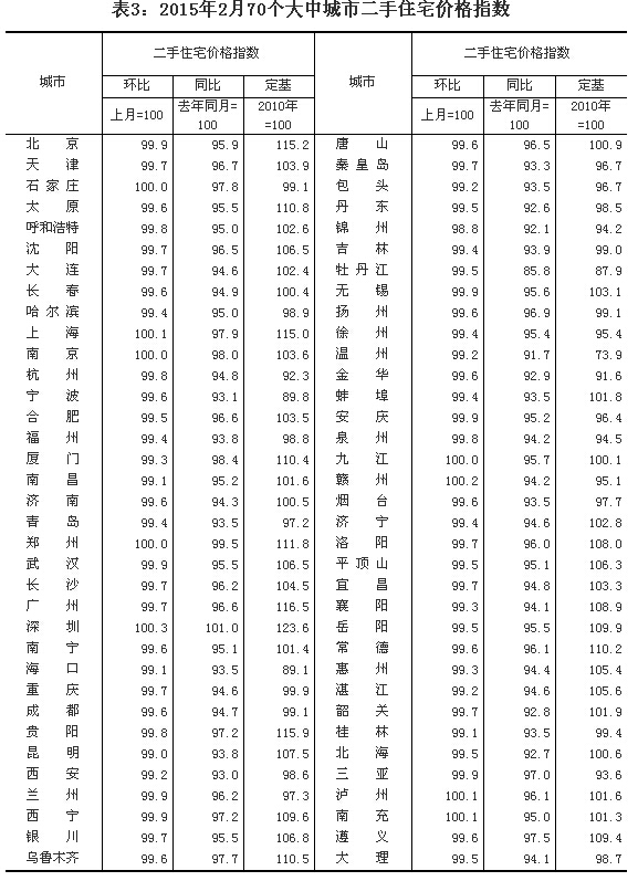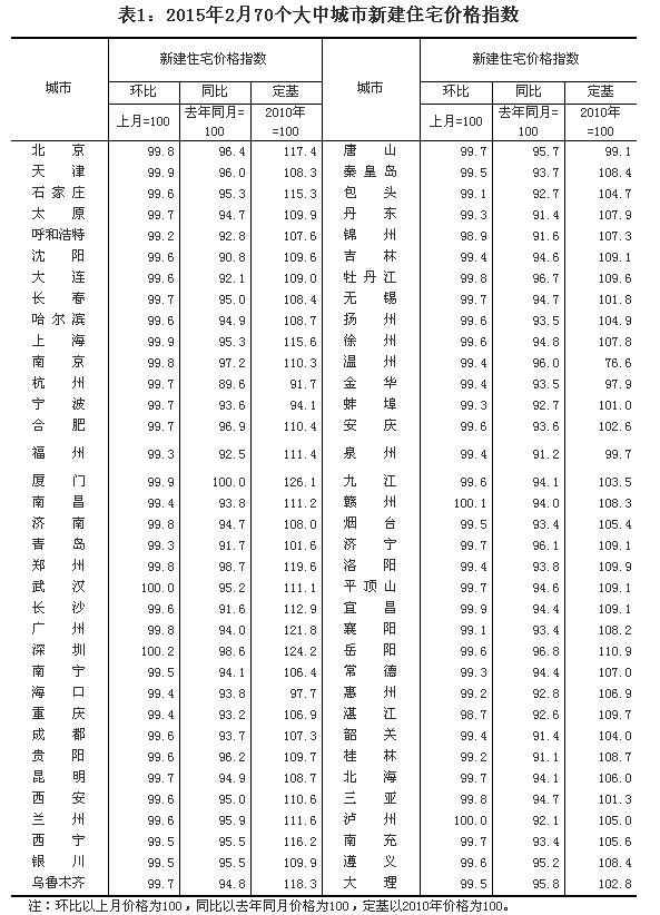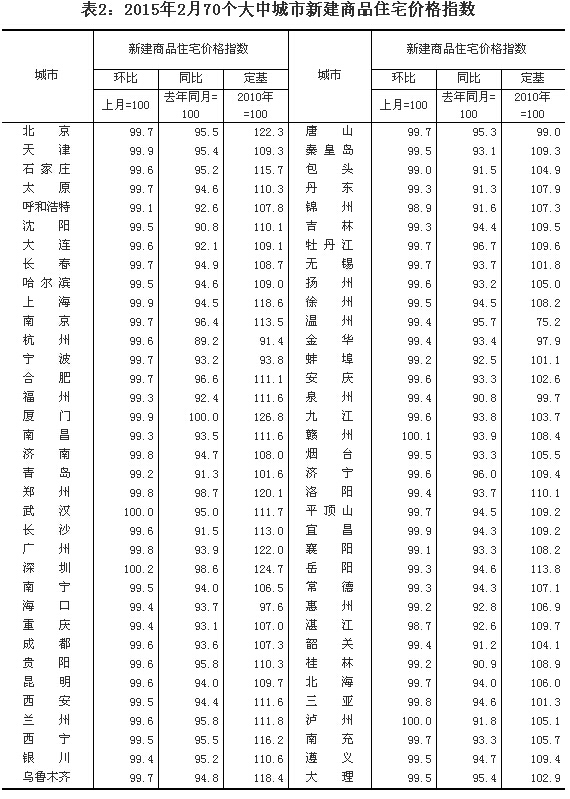 2015年2月份70個(gè)大中城市住宅銷售價(jià)格變動情況