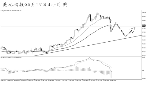 美元指數(shù)受到美聯(lián)儲利率決議的影響,短線發(fā)生暴跌行情。從日線圖上看,均線系統(tǒng)仍然保持依托狀態(tài),由于道氏低點支撐93.20距離現(xiàn)價過遠,美元指數(shù)想要結(jié)束中線的跌勢仍有很大的困難。從4小時圖上看,此波下跌力度迅猛,下方趨勢線支撐在96.15,美元指數(shù)有望逐步向此位置發(fā)起調(diào)整。短線有一定的上調(diào)需求,但在重新暴發(fā)出強勁的多頭動能之前,不宜激進看漲。