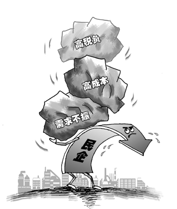 全國300多名民營企業(yè)家在山東濟南出席全國工商聯(lián)十一屆三次執(zhí)委會時,普遍表示“日子難過”。當前緊繃的資金鏈、居高不下的稅負給企業(yè)帶來前所未有的生存壓力,許多民企尤其是中小企業(yè)經(jīng)營難以為繼,生存舉步維艱。有的企業(yè)家對產(chǎn)業(yè)結(jié)構(gòu)調(diào)整、轉(zhuǎn)型升級信心不足,對經(jīng)濟中出現(xiàn)的諸多不確定因素心存恐懼。需求不振、高成本、高稅負與當前的民企生死攸關(guān)。