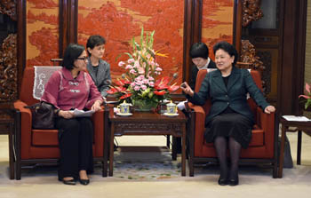 3月23日,國務(wù)院副總理劉延?xùn)|(右)在北京中南海紫光閣會見世界銀行常務(wù)副行長兼首席運(yùn)營官英卓華。記者 張鐸