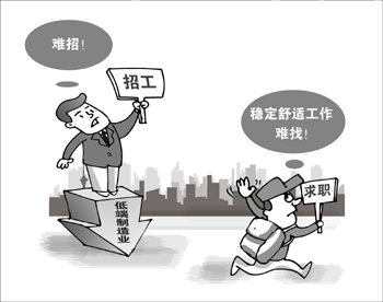 首先,結(jié)構(gòu)性矛盾更加突出,一線普工和技術(shù)型工種“雙短缺”,從季節(jié)性缺工轉(zhuǎn)為常年缺工,低端制造業(yè)和傳統(tǒng)服務(wù)業(yè)用工緊張呈現(xiàn)“常態(tài)化”,企業(yè)“招工難”現(xiàn)象依然普遍存在。