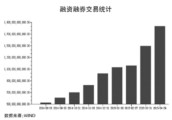 而從推動(dòng)本輪股市上漲的核心因素之一——杠桿資金的進(jìn)場(chǎng)速度來(lái)看,投資者做多的情緒依然十分強(qiáng)烈。WIND統(tǒng)計(jì)數(shù)據(jù)顯示,截至4月29日,滬深兩市的融資融券余額已經(jīng)達(dá)到了1.83萬(wàn)億元,其中融資余額達(dá)1.825萬(wàn)億元。2014年年底,滬深兩市的融資融券余額僅為1.13萬(wàn)億元。這意味著,僅僅四個(gè)月的時(shí)間,滬深兩市的杠桿資金就增加了7000億元,而且基本上是融資買(mǎi)入。