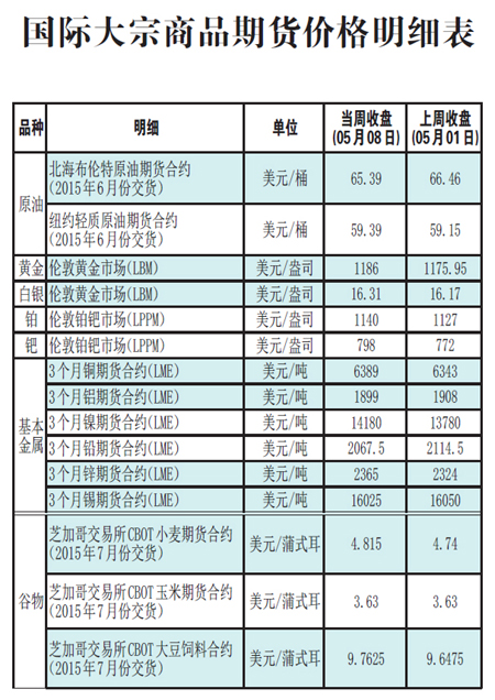 國(guó)際大宗商品期貨價(jià)格明細(xì)表[2015-5-11]