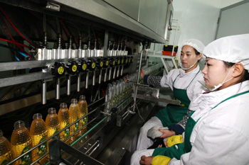 黑龍江青岡縣用活當?shù)赜衩踪Y源,引進年產(chǎn)值超30億元的龍鳳玉米開發(fā)有限公司,解決了當?shù)赜衩卒N售之困,為農(nóng)戶提供再就業(yè)機會。圖為該公司生產(chǎn)線正在生產(chǎn)玉米胚芽油。(資料照片) |