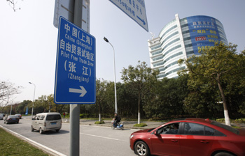 今年4月,國務(wù)院分別印發(fā)通知,批準(zhǔn)《中國(廣東)自由貿(mào)易試驗(yàn)區(qū)總體方案》、《中國(天津)自由貿(mào)易試驗(yàn)區(qū)總體方案》、《中國(福建)自由貿(mào)易試驗(yàn)區(qū)總體方案》和《進(jìn)一步深化中國(上海)自由貿(mào)易試驗(yàn)區(qū)改革開放方案》。圖為位于上海張江張東路上的中國(上海)自由貿(mào)易試驗(yàn)區(qū)(張江)的路標(biāo)指示牌。