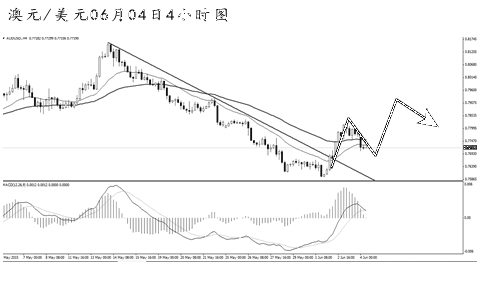 ▲澳元兌美元沖高后小幅回落調(diào)整。從日線圖上看,MACD尚未擺脫空頭動能充盈的階段,低位盤整的走勢沒有發(fā)生改變。再看4小時(shí)圖,匯價(jià)連續(xù)強(qiáng)力上攻,迅速將均線系統(tǒng)的壓制位升破,上方明顯的阻力在0.7840。短線澳元的主趨勢頻繁轉(zhuǎn)換,目前可關(guān)注0.7665的道氏點(diǎn)支撐,澳元只要不跌破此位置,后市仍有延續(xù)反彈的希望。
