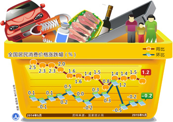 展望下半年,各方普遍認(rèn)為,形勢也很難明顯好轉(zhuǎn)。卓創(chuàng)資訊分析師李曉蓓表示,5月CPI同比上漲1.2%,環(huán)比下降0.2%,低于預(yù)期;PPI同比下降4.6%,環(huán)比下降0.1%。盡管豬肉價格恢復(fù)性上漲,但蔬菜等食品價格季節(jié)性回落,且工業(yè)品價格仍偏弱。當(dāng)前國際經(jīng)濟復(fù)蘇乏力,大宗商品價格下跌,國內(nèi)產(chǎn)能過剩問題依然存在,全年物價將低位運行!拔覀冋J(rèn)為,未來CPI同比漲幅很有可能會再度走低”。