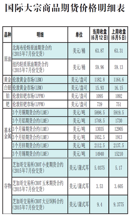 · 國際大宗商品期貨價格明細表[2015-6-8]