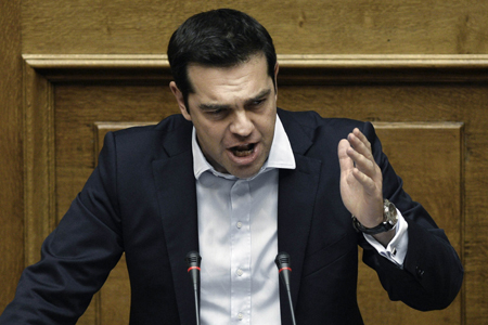6月28日,希臘總理齊普拉斯在雅典向議會發(fā)表講話。
