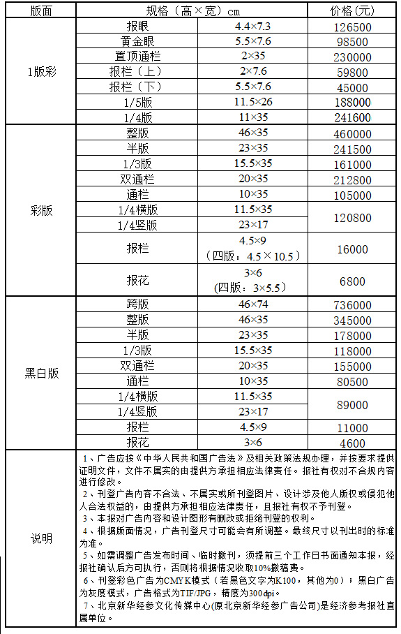 | 《經(jīng)濟(jì)參考報(bào)》報(bào)紙廣告刊例(2020) |